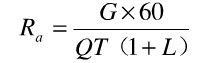 式中:Ra—磨內(nèi)的球料比; G -- 磨內(nèi)研磨體裝載量,(噸) ; Q – 球機(jī)產(chǎn)量,(噸) ; T -- 物料在磨內(nèi)停留時(shí)間,(分) ,可根據(jù)實(shí)測(cè)確定。