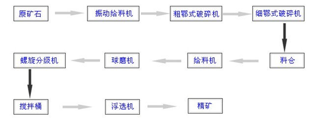 首先進(jìn)行浮選機(jī)優(yōu)先浮選,其泡沫產(chǎn)品進(jìn)行二次精選、三次精選最終成為精礦產(chǎn)品,經(jīng)優(yōu)先浮選后的尾礦經(jīng)過一次粗選、一次精選、二次精選、三次精選、一次掃選的選別流程,一次精選的尾礦與一次掃選的泡沫產(chǎn)品一并進(jìn)入旋流器進(jìn)行再分級(jí)、再選別,二次精選與一次精選構(gòu)成閉路選別,三次精選與二次精選構(gòu)成閉路選別。