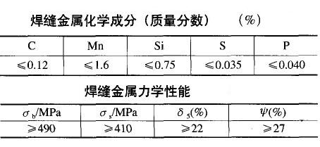 由于45鋼含碳量較高,且大齒輪的厚度大,形狀復(fù)雜,易產(chǎn)生裂紋,因此綜合考慮選擇J506焊條( 3.2mm)其焊縫金屬化學(xué)成分及力學(xué)性能如下表所示。焊條焊前需經(jīng)350℃烘干2h,烘干的焊條應(yīng)放在保溫筒內(nèi),隨用隨取(1~4h內(nèi))。