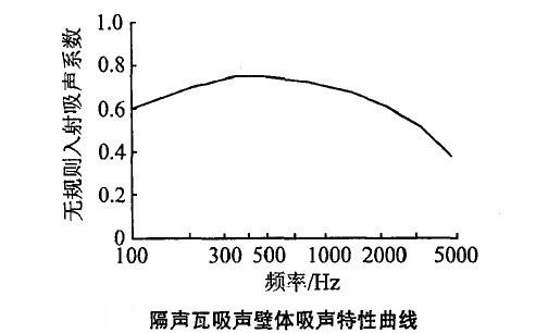 5、插入損失量計算。根據(jù)企業(yè)降低噪聲的標(biāo)準(zhǔn)和對球磨機(jī)噪聲頻譜圖的分析,最終確定隔聲瓦的頻帶隔聲量和聲級隔聲量。吸聲壁體的吸聲特性曲線如下圖。