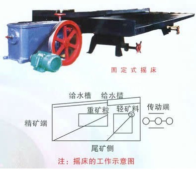 搖床是用于選別細(xì)粒物料的重力選礦設(shè)備,廣泛應(yīng)用于選別錫、鎢、金銀、鉛、鋅、鉭、鈮、鐵、錳、鈦鐵和煤等。我廠生產(chǎn)搖床歷史悠久,并不斷開發(fā)創(chuàng)新,從最初的直條床面搖床基礎(chǔ)上發(fā)展到單曲波床面搖床(上世紀(jì)70年代);到雙曲波床面搖床(上世紀(jì)90年代),使搖床的處理量、回收率和富集比都有大幅度的提高。